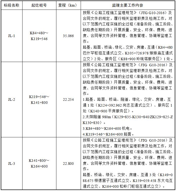 本次招标施工监理共划分为3个标段,每个标段设置一级监理机构,即总监理工程师办公室(总监办)。具体标段划分见下表: