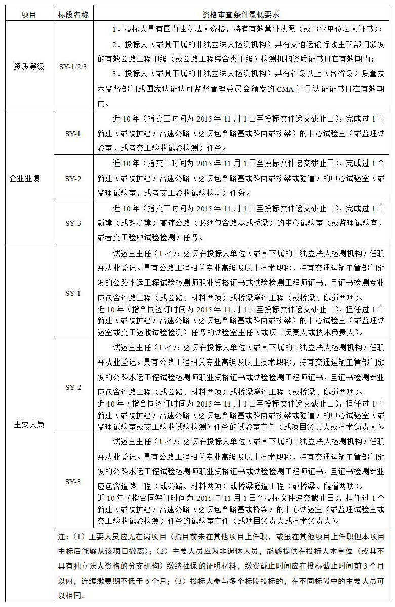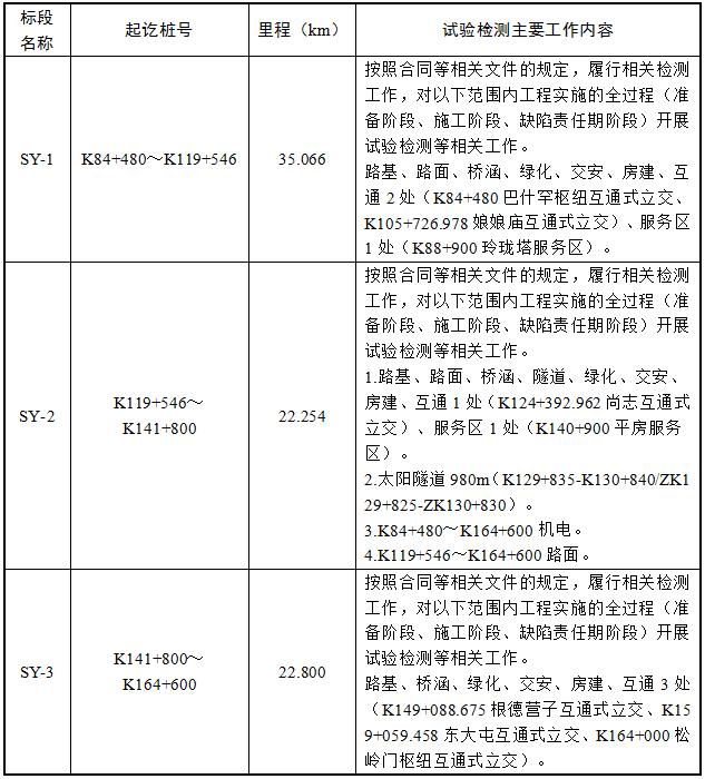 本次招标中心试验室共划分为3个标段,具体标段划分见下表: