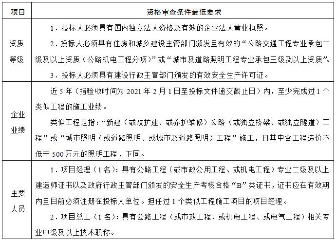 根据《关于发布公路工程从业企业资质名录的通知》(厅公路字〔2011〕114号)要求,投标人如为名录范围的施工企业,则应进入交通运输部“全国公路建设市场监督管理系统(https://hwdms.mot.gov.cn/BMWebSite/)”中的公路工程施工资质企业名录,且投标人名称和资质与该名录中的相应企业名称和资质完全一致。
