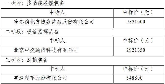 国家区域性公路交通应急装备物资(辽宁沈阳)储备中心建设项目第二批装备物资采购中标结果公告