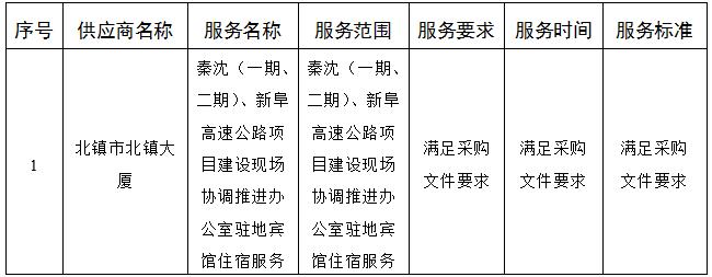 秦沈(一期、二期)、新阜高速公路项目建设现场协调推进办公室驻地宾馆住宿服务成交公告