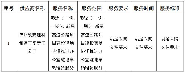 秦沈(一期、二期)、新阜高速公路项目建设现场协调推进办公室驻地车辆租赁服务成交公告