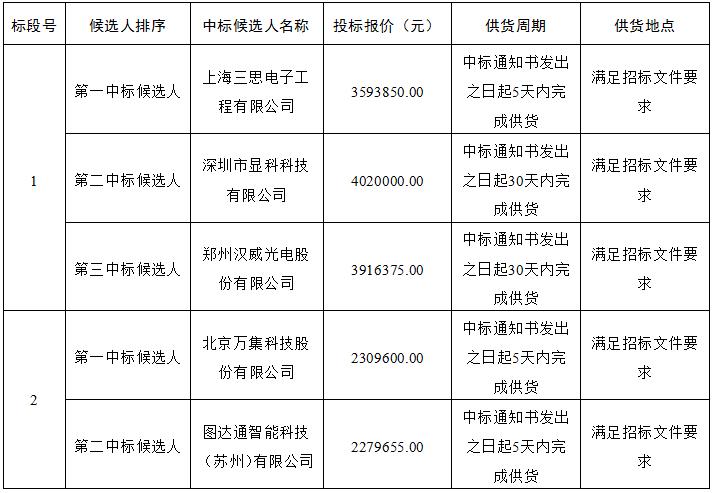 中标候选人排序、名称、投标报价、供货周期、供货地点