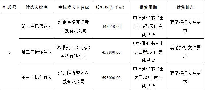 中标候选人排序、名称、投标报价、供货周期、供货地点